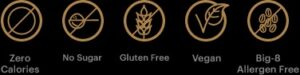 ZERO CARBS, NO SUGAR, 0 CALORIES, VEGAN
